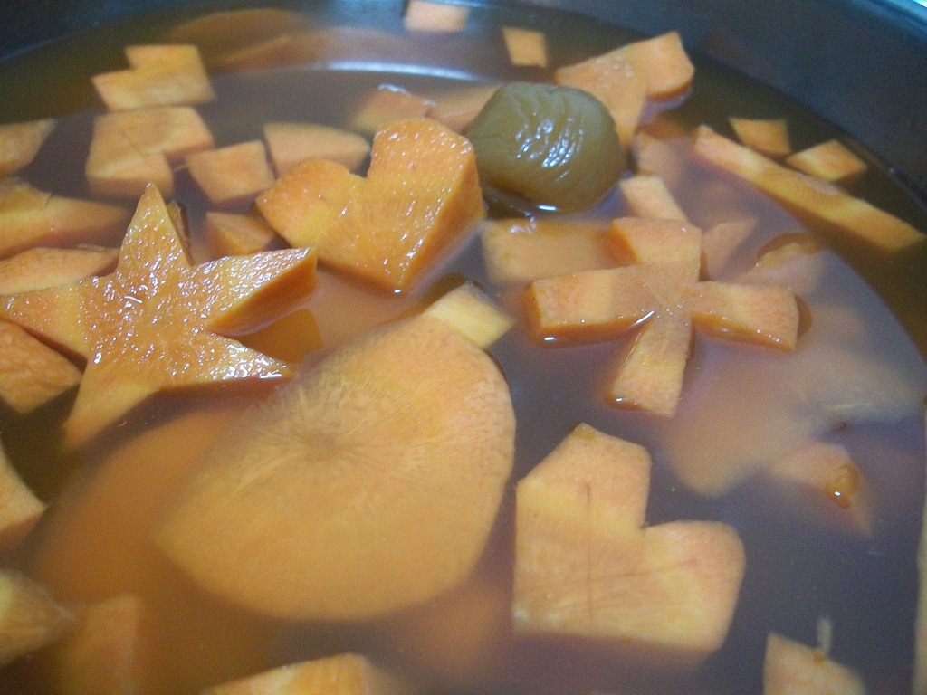 老增壽紫蘇梅濃縮汁一瓶$100 聖女小番茄 刀劃十字燙水去皮 紅蘿蔔 1~2條 隨意切造型 番茄燙後冰鎮,剝皮~丟入梅汁放冰箱一天就可以吃囉~ 醉月蘿蔔番茄 隨意切花很好玩耶~ 我不會挖球狀...哭哭 稀釋紫蘇梅汁沸騰後,紅蘿蔔丟下去煮約2分鐘(加速入味~) 待涼後,放冰箱一天就可以吃囉~! 歐伊細!! 中間刺幾刀或刺幾個洞會比較快入味喔~!